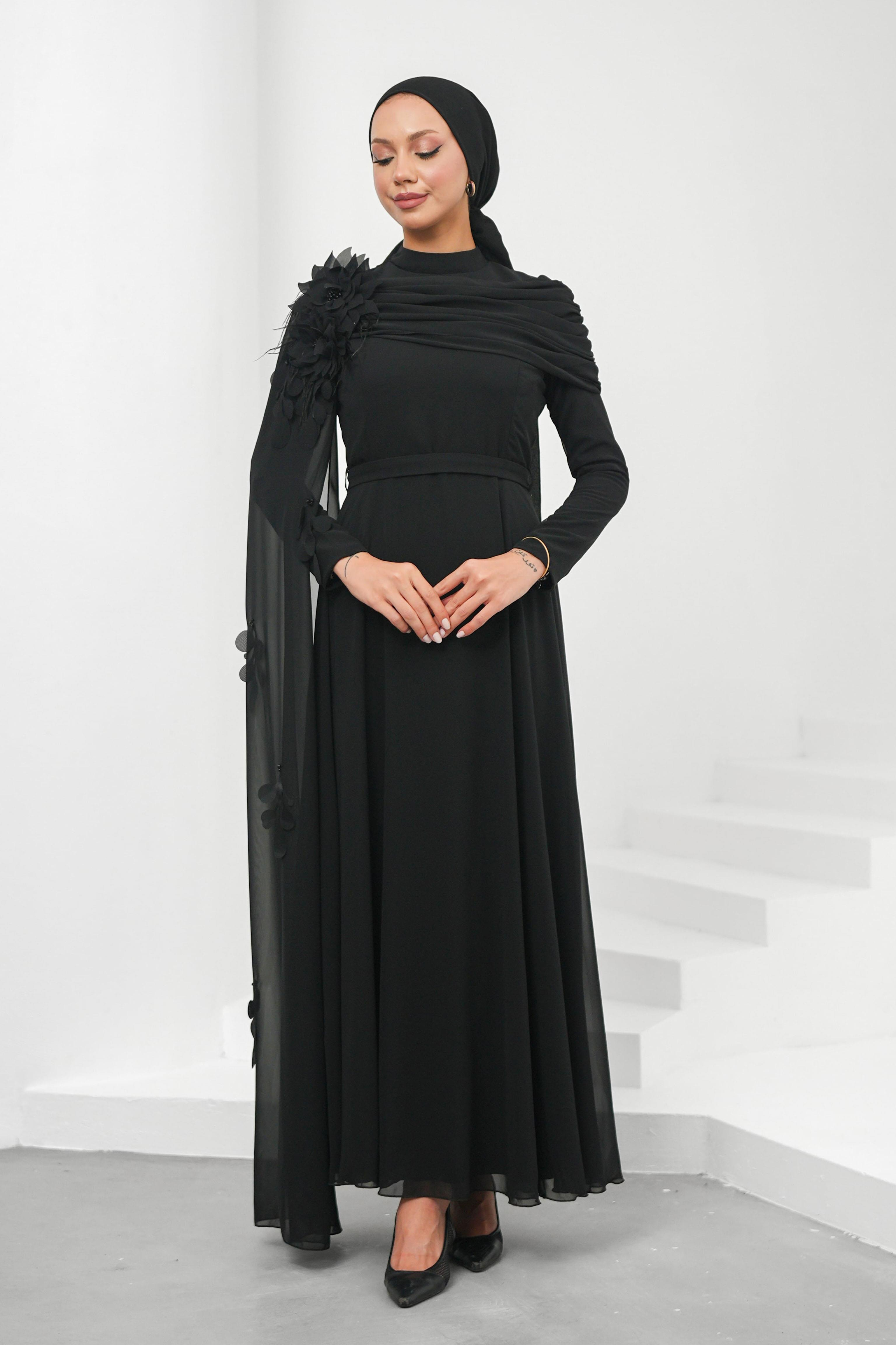 Gülce Şifon Siyah Tesettür Abiye (LP6329)