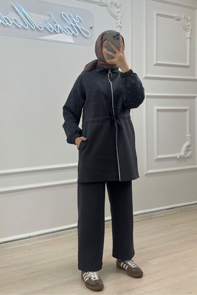 İncili Scuba Antrasit Tesettür TakımHM1340