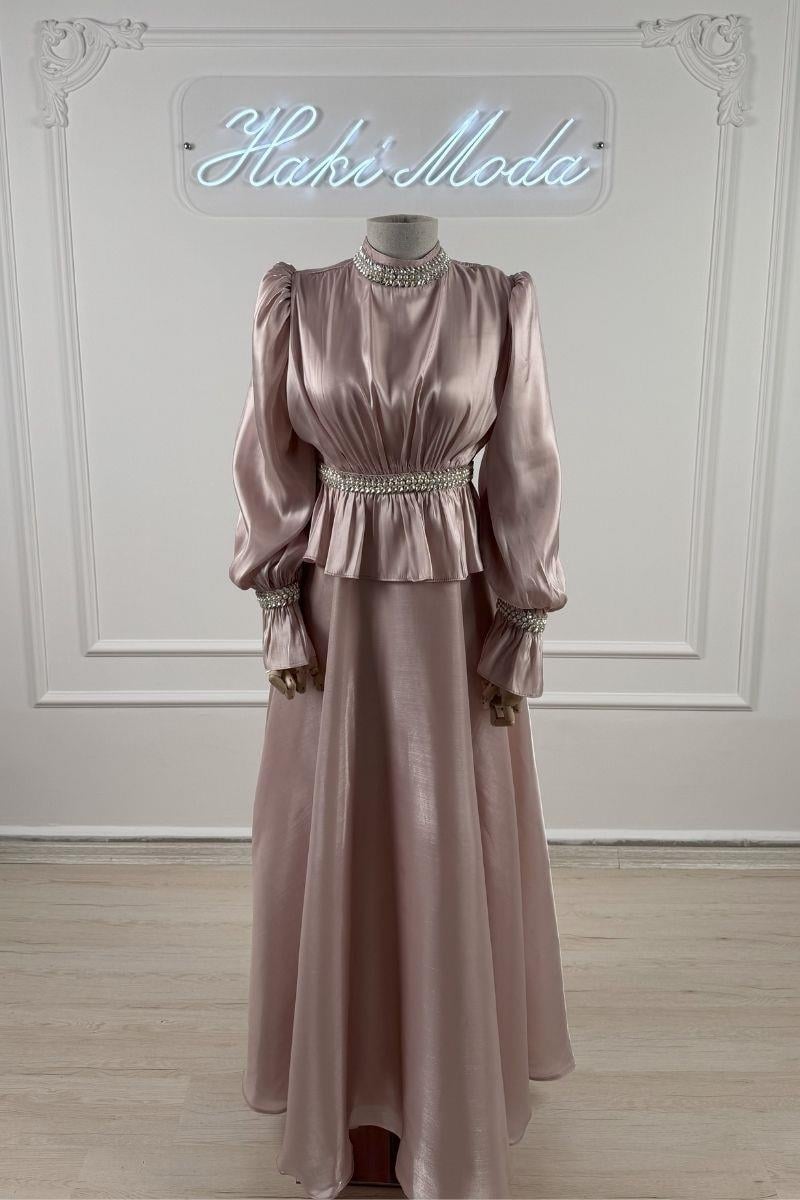 İnci Derya Organze Pudra Tesettür Abiye (LP6324)