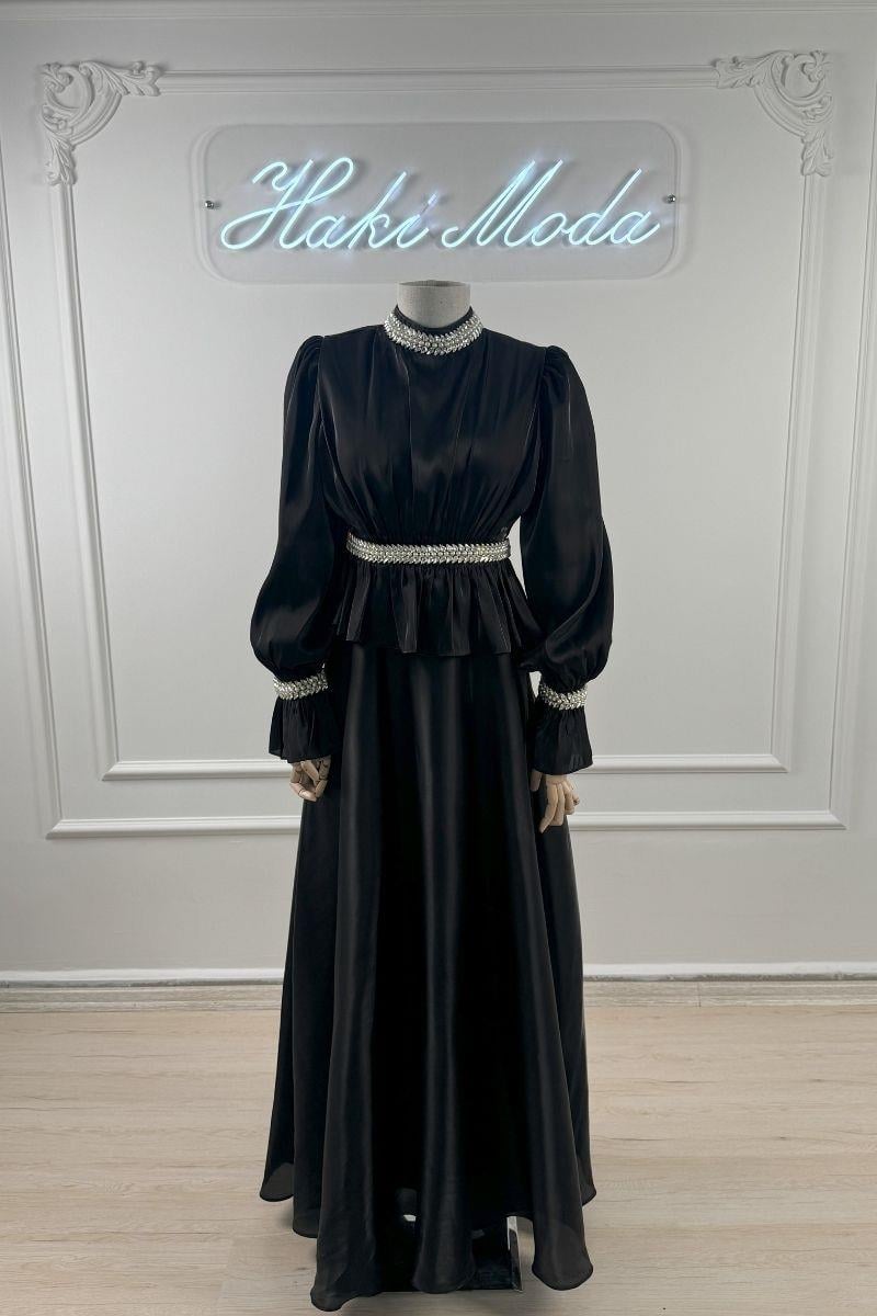 İnci Derya Organze Siyah Tesettür Abiye (LP6324)